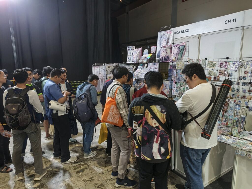 Salah satu booth yang mencuri perhatian penulis adalah booth kreator Pika Neko dari Taiwan. Pika Neko menawarkan berbagai macam merch yang imut-imut di seputaran fandom CGDCT. Buat kamu yang sayang anak terutama fandom Blue Archive, Gochiusa, atau Hoyoverse mungkin bisa mampir di booth CH-11.